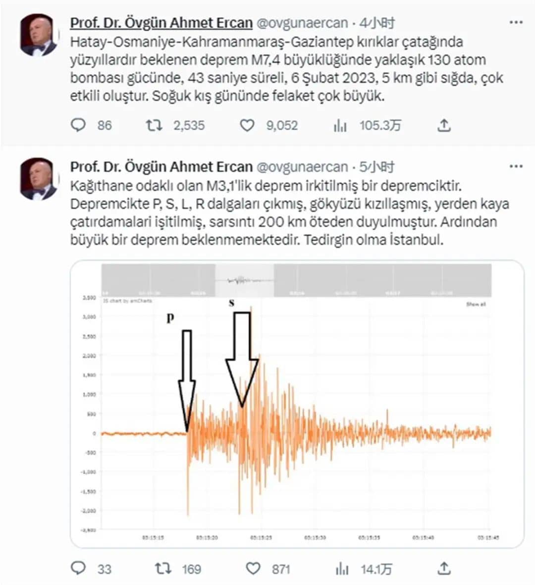 ▲土耳其地震專家推特截圖