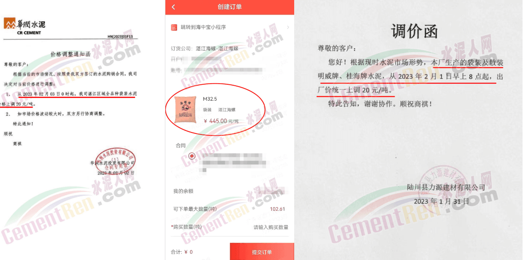 據(jù)水泥人網(wǎng)近期消息,2023年春節(jié)后,廣西區(qū)域包括海螺水泥、紅獅水泥等在內(nèi)的主要品牌企業(yè)率先通知上調(diào)包裝水泥價(jià)格20元/噸,同期華東長(zhǎng)三角區(qū)域主要品牌企業(yè)上調(diào)熟料價(jià)格10元/噸。隨后華南廣東湛江區(qū)域海螺水泥、華潤(rùn)水泥等主要品牌企業(yè)率先上調(diào)水泥價(jià)格20元/噸。