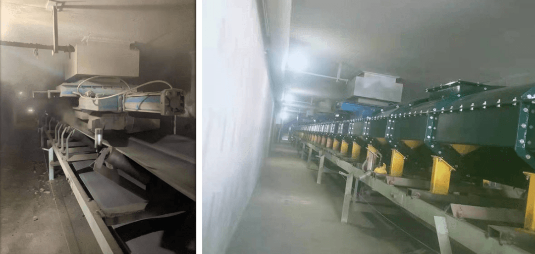皮帶依靠托輥的支撐和頭尾輪的張緊形成了槽型,從而實現(xiàn)粉狀物料的運輸。