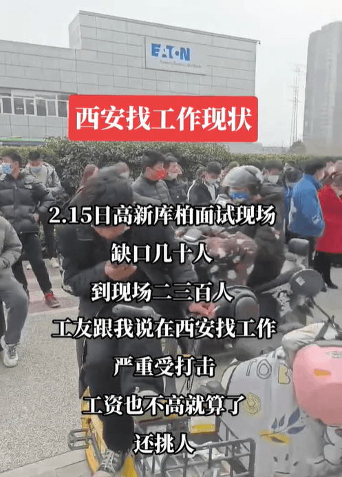 多家電子廠門口人流涌動(dòng),黑壓壓的人群并非做生意的,而是來找工作的,部分工廠錄取比例只有10%不到,且工價(jià)也不再是人人艷羨的高價(jià)了。美利達(dá)自行車廠19塊錢一小時(shí)的工價(jià),長(zhǎng)白班僅10個(gè)人的缺口來了300多人;新能安250個(gè)人爭(zhēng)搶80個(gè)崗位名額;西安高新庫柏面試現(xiàn)場(chǎng),缺口幾十人,現(xiàn)場(chǎng)有300多人,工友表示嚴(yán)重受打擊,工資不高還挑人。