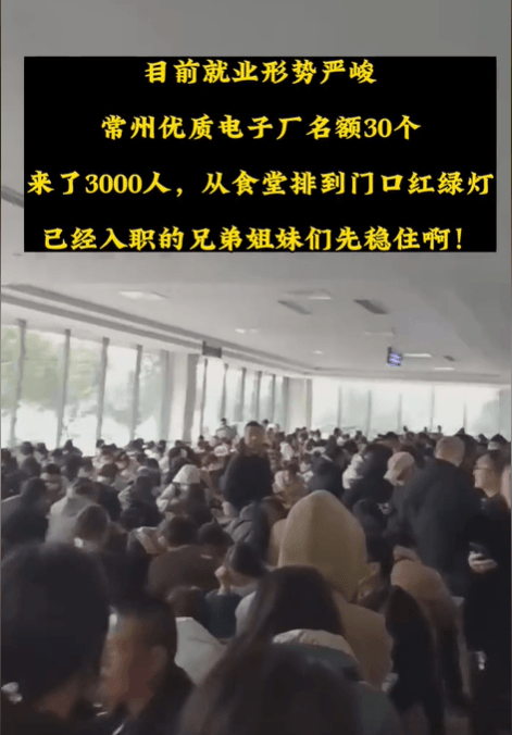 江蘇常州優(yōu)質(zhì)電子廠,招工名額30個(gè),來了3000人,從食堂排到門口紅綠燈。