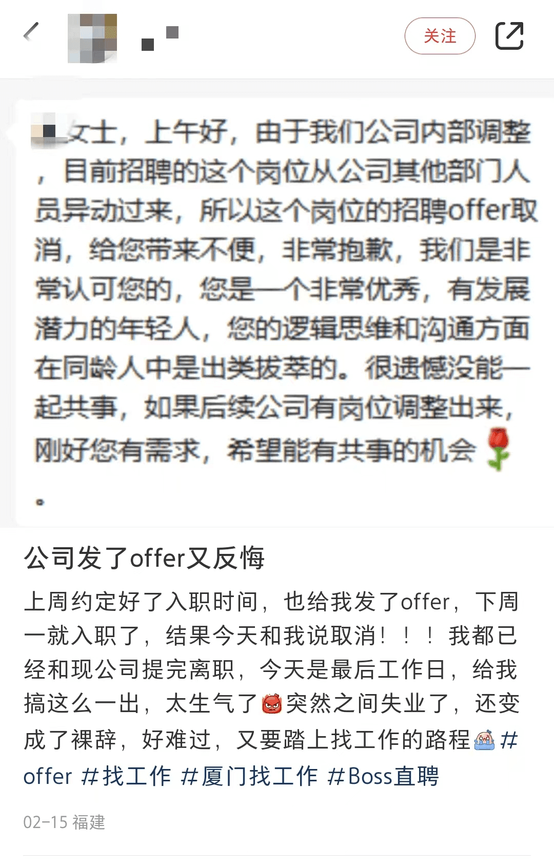 某網(wǎng)友曬出打工人應(yīng)聘的現(xiàn)狀,建議年齡大的老鄉(xiāng)過一段時(shí)間再出來。