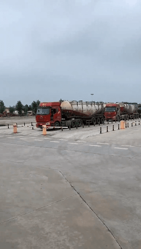 四川江油紅獅水泥廠外水泥車排隊