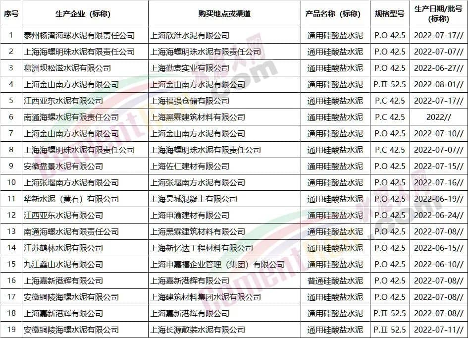 從上述各省市地區(qū)公布的抽檢結(jié)果可見(jiàn),抽檢產(chǎn)品多為生產(chǎn)領(lǐng)域企業(yè)已檢合格的成品水泥。流通領(lǐng)域抽檢也多為有標(biāo)稱生產(chǎn)企業(yè)的,且擁有相應(yīng)合格證明的企業(yè)。