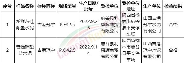 陜西省榆林市府谷縣市場(chǎng)監(jiān)督管理局抽檢2批次水泥產(chǎn)品,全部合格。