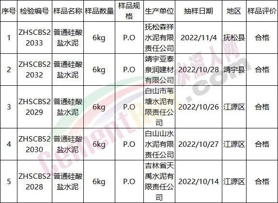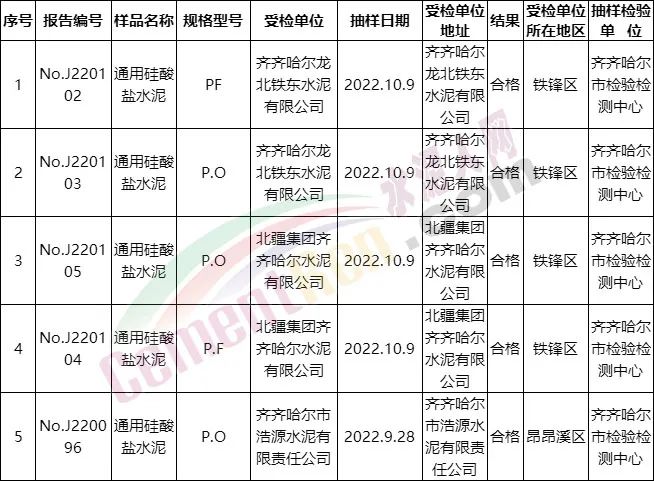 黑龍江省齊齊哈爾市市場(chǎng)監(jiān)管局抽查水泥產(chǎn)品5批次,全部合格。