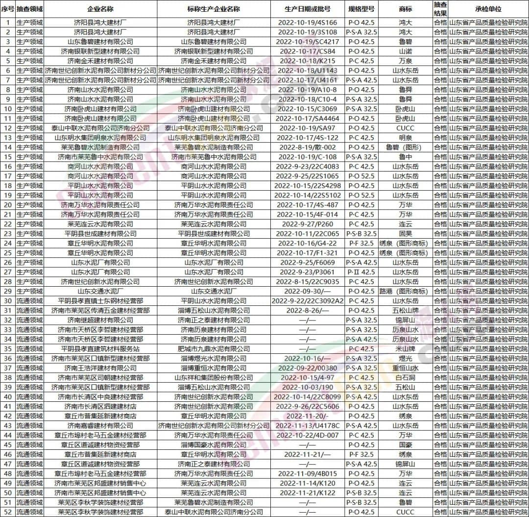 山東濟(jì)南2022年水泥產(chǎn)品質(zhì)量監(jiān)督抽查未抽到企業(yè)匯總表
