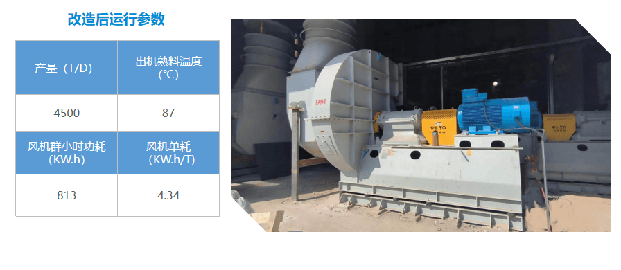 該企業(yè)裝備兩條日產(chǎn)5000噸規(guī)模的熟料生產(chǎn)線,2022年推進(jìn)的A線改造廠家改選用沃亞機(jī)械的高效篦冷機(jī)冷卻風(fēng)機(jī),投入運(yùn)行4個(gè)月時(shí)間,通過三方技術(shù)標(biāo)定,本項(xiàng)目冷卻風(fēng)機(jī)運(yùn)行效率高(風(fēng)機(jī)群整體運(yùn)行效率>83.8%),冷卻電耗表現(xiàn)非常優(yōu)異,電耗明顯優(yōu)于同類項(xiàng)目,達(dá)到國內(nèi)同類技改最佳水平。