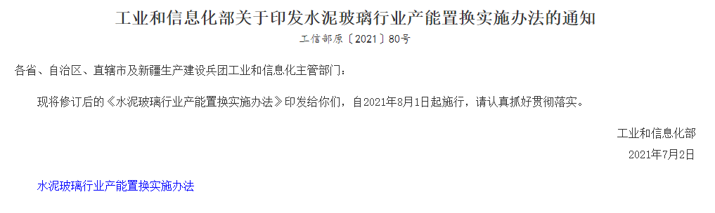 2021年8月1日起新修訂的《水泥玻璃行業(yè)產(chǎn)能置換實施辦法》 規(guī)定嚴(yán)禁備案和新建擴(kuò)大產(chǎn)能的水泥熟料項目。確有必要新建的,必須制定產(chǎn)能置換方案,實施產(chǎn)能置換。產(chǎn)能置換要求中不論是位于國家規(guī)定的大氣污染防治重點區(qū)域?qū)嵤┊a(chǎn)能置換的水泥熟料項目,還是跨省置換的項目,均加大了置換比例,但未規(guī)定在能耗方面的置換要求。