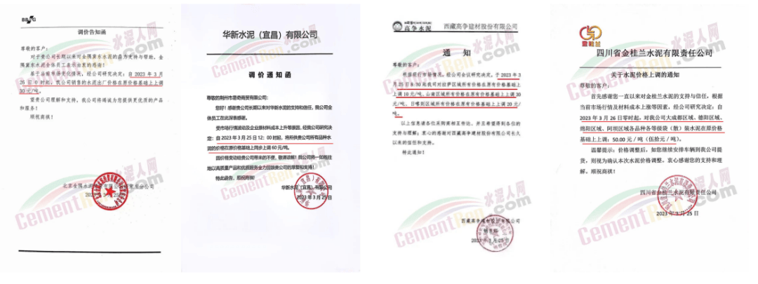 3月中旬以來,四川、重慶、湖北、湖南、江西、河北、海南等百余個(gè)城市上調(diào)報(bào)價(jià),川渝地區(qū)甚至出現(xiàn)一次性上調(diào)50-70元/噸的行情。連價(jià)格一直維持較高位的西藏地區(qū)主要品牌企業(yè)也通知上調(diào)水泥價(jià)格10-30元/噸。