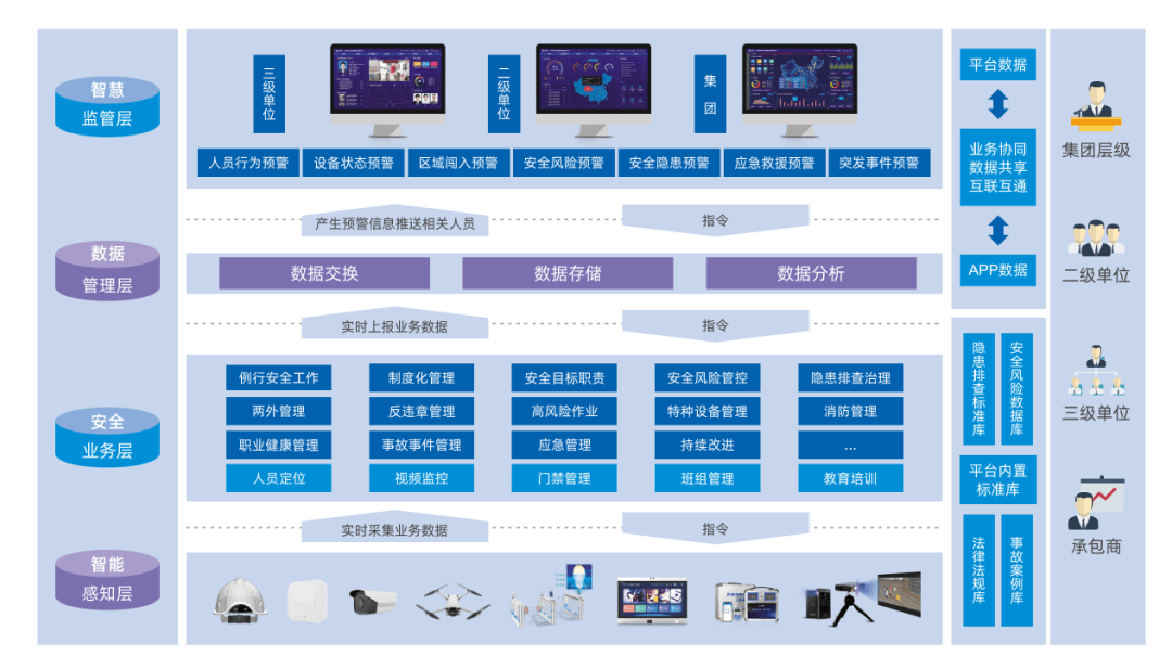 通過構(gòu)建集團(tuán)、二級單位和三級單位統(tǒng)一應(yīng)用平臺,實現(xiàn)“安全管理數(shù)據(jù)”上下貫通、左右協(xié)同。
