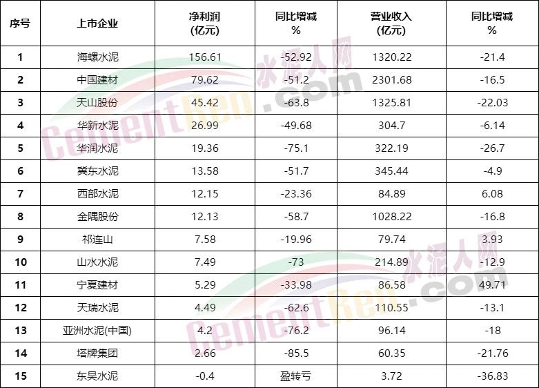 水泥企業(yè)業(yè)績遭遇“血洗”
