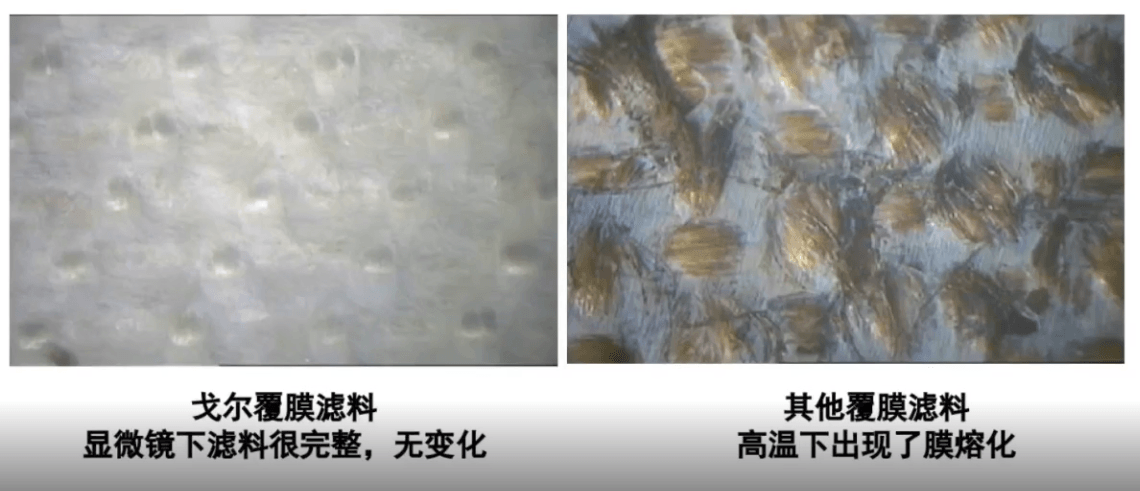 戈?duì)柌@w覆膜濾袋即使在260度高溫下工作24小時(shí),未出現(xiàn)纖維老化導(dǎo)致濾袋破損,粉塵不達(dá)標(biāo)的情況,且外觀無任何變化。