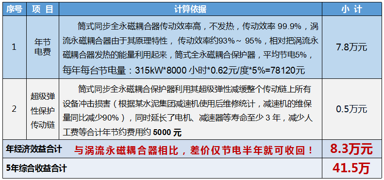 由此產(chǎn)生的經(jīng)濟(jì)效益十分可觀!以原使用渦流永磁耦合器對(duì)比估算(按315kW電機(jī)估算):
