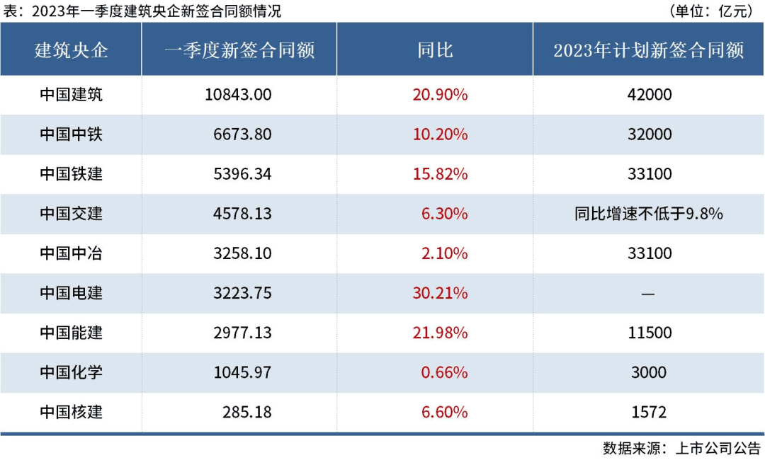 九大建筑央企一季度開門紅,新簽合同額同比增長18.21%