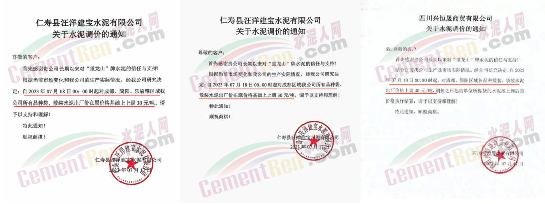 20日起,陜西銅川聲威、富平生態(tài),四川省星船、西南等多家水泥企業(yè)上調(diào)水泥價(jià)格30元/噸;