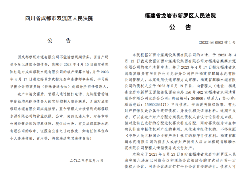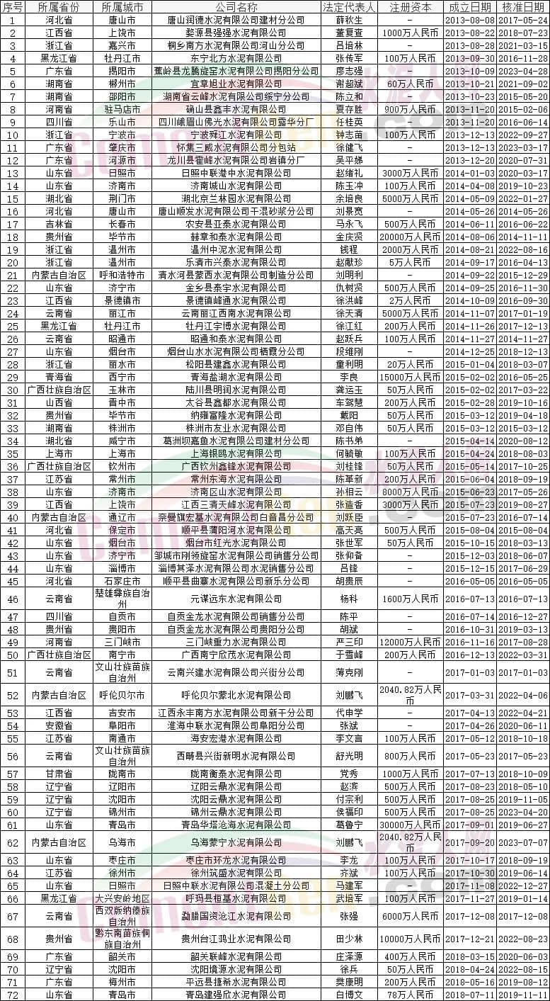 水泥人網(wǎng)注意到成立5年以上至10年內(nèi)注銷的企業(yè)名單中包含遼陽云鼎水泥有限公司、沈陽云鼎水泥有限公司、錦州云鼎水泥有限公司、呼倫貝爾蒙北水泥有限公司、烏海蒙寧水泥有限公司等區(qū)域聯(lián)合水泥公司。