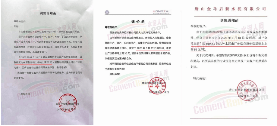 河南區(qū)域8月份以來已經(jīng)分別于8月4日和11日前后連續(xù)兩次上調(diào)報價,累計上調(diào)50-60元/噸,涉及當?shù)匕ㄌ烊鹚?、中?lián)水泥在內(nèi)的數(shù)十家主要品牌企業(yè)。