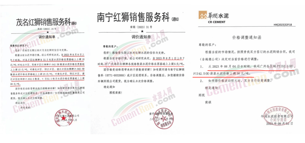 8月以來,華南廣東地區(qū)包括主要品牌企業(yè)華潤水泥、紅獅水泥、錦象水泥在內(nèi)的多家企業(yè)通知上調(diào)水泥報價。涉及湛江、陽江、高化廣州及珠三角區(qū)域多個市場。