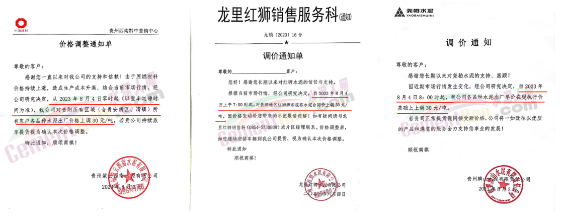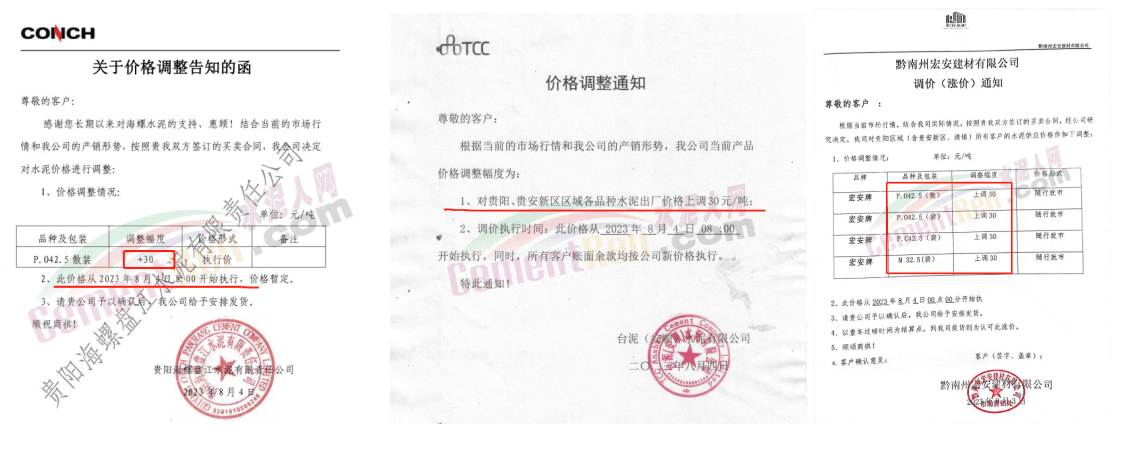 貴州區(qū)域包括紅獅、海螺、臺泥等10多家企業(yè)宣布漲價