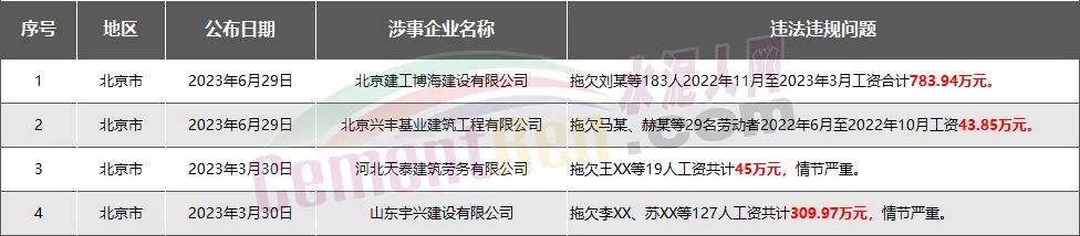 北京市4家房企、建企欠薪被通報或處罰,涉及金額1182.76萬元