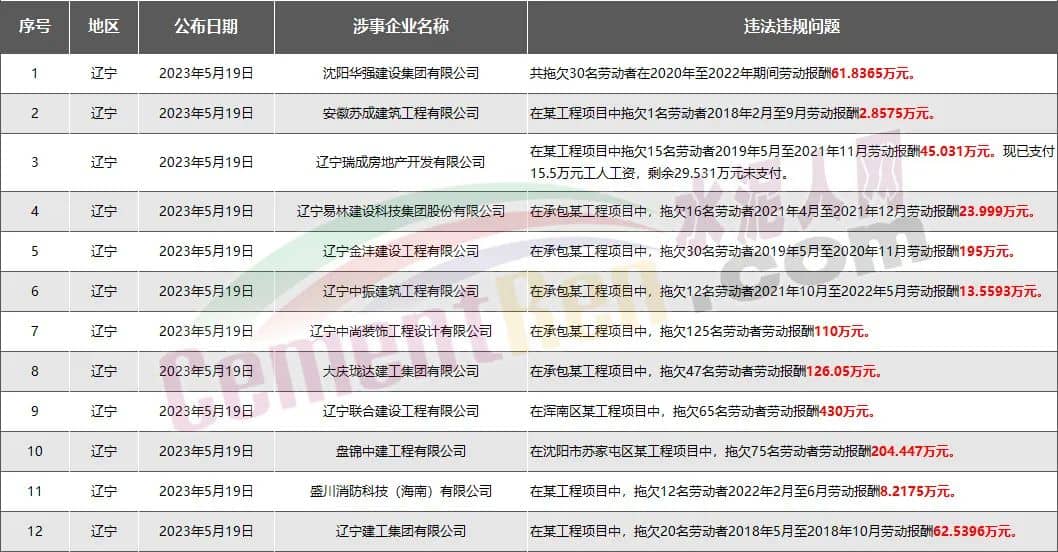 遼寧省12家房企、建企欠薪被通報或處罰,涉及金額1282萬元