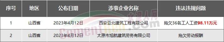 山西省2家房企、建企欠薪被通報或處罰,涉及金額98.11萬元