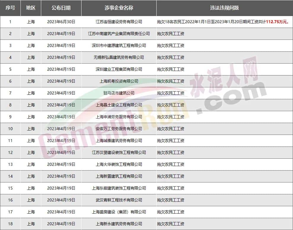 上海市18家房企、建企欠薪被通報或處罰,涉及金額112.75萬元