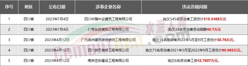四川省5家房企、建企欠薪被通報或處罰,涉及金額515.42萬元