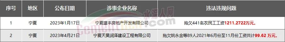 寧夏2家房企、建企欠薪被通報或處罰,涉及金額1310.89萬元