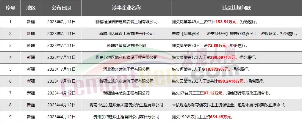 新疆9家房企、建企欠薪被通報或處罰,涉及金額2194萬元
