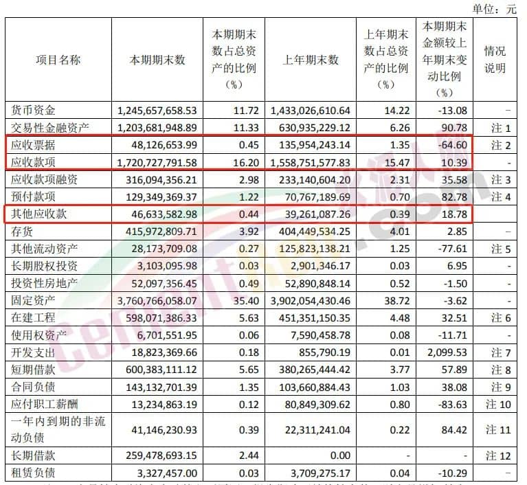 2023年上半年天瑞水泥應(yīng)收賬款2.42億,應(yīng)收票據(jù)96.1億,其他應(yīng)收款3.22億。