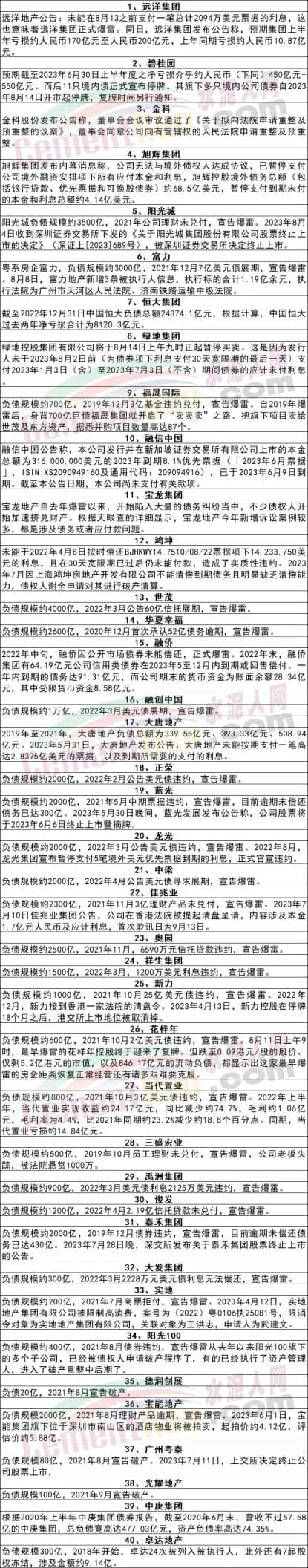 據(jù)水泥人網(wǎng)不完全統(tǒng)計(jì),目前已有40多家龍頭房企已經(jīng)宣布違約爆雷,甚至停牌退市,遠(yuǎn)洋集團(tuán)未支付美元票據(jù)利息、碧桂園11只境內(nèi)債正式停牌、陽(yáng)光城理財(cái)未兌付、綠地集團(tuán)未支付債券應(yīng)付利息、世茂集團(tuán)60億信托展期、正榮美元債違約、藍(lán)光票據(jù)違約、花樣年美元債違約……他們欠下的賬款和未付的商票又該如何處置呢?