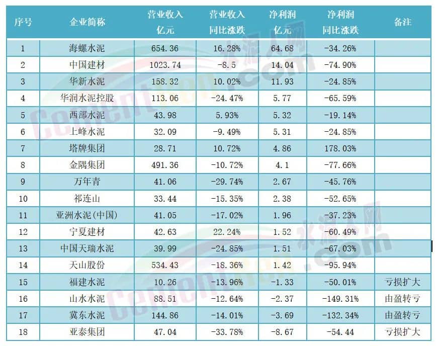 此外,還有不少企業(yè)出現(xiàn)虧損。冀東水泥營收實(shí)現(xiàn)144.86億元,同比下降14.01%;歸母凈利潤-3.69億元,同比下降132.34%。