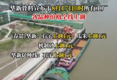 另據(jù)市場反饋,華新骨料曾于8月17日0時上調(diào)所有工廠產(chǎn)品價格。