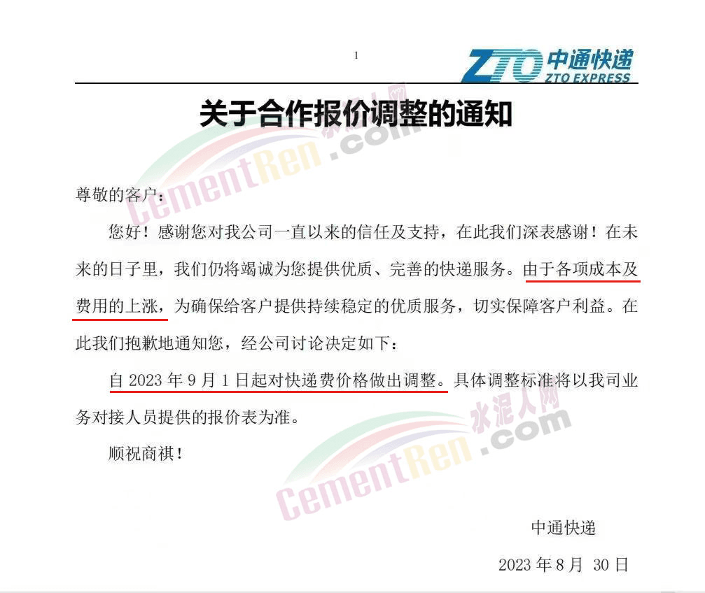 中通快遞通知,由于各項成本及費用的上漲,為確保給客戶提供持續(xù)穩(wěn)定的優(yōu)質(zhì)服務,切實保障客戶利益。經(jīng)公司討論決定自2023年9月1日起對快遞費價格作出調(diào)整。