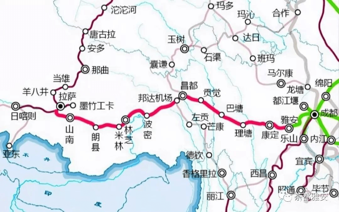 川藏鐵路從成都到拉薩,可以分成三段來(lái)看。成都到雅安的成雅段,長(zhǎng)140公里,雅安到林芝的雅林段,長(zhǎng)1010公里,拉薩到林芝的拉林段,長(zhǎng)400公里。成雅段和拉林段已建成通車,剩下中間的雅林段于2020年11月初開工建設(shè),工期預(yù)計(jì)為10年,2032年左右雅林段將全線通車,設(shè)計(jì)時(shí)速為120~200公里/小時(shí)。