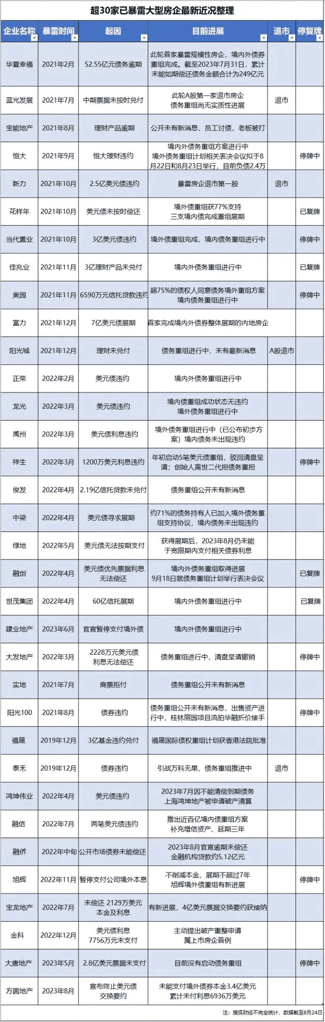 再有,房地產(chǎn)市場人均住房面積已經(jīng)達到了較高水平。房企在下行周期中,頻頻爆雷。截至2023年8月24日,除在暴雷邊緣被“拉回”的碧桂園及遠洋,已經(jīng)有超過30家大型房地產(chǎn)企業(yè)暴雷。