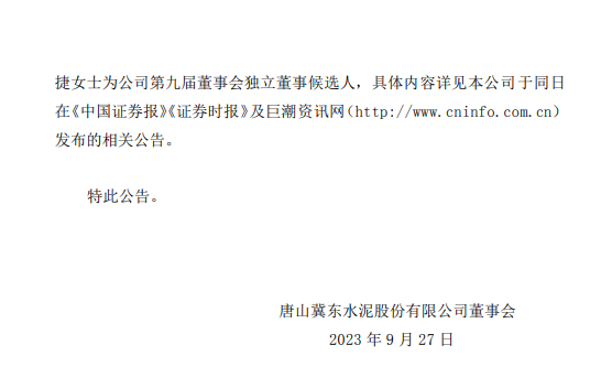 冀東水泥獨(dú)立董事孔祥忠先生、姚頤女士辭職,王建新先生、何捷女士將接任