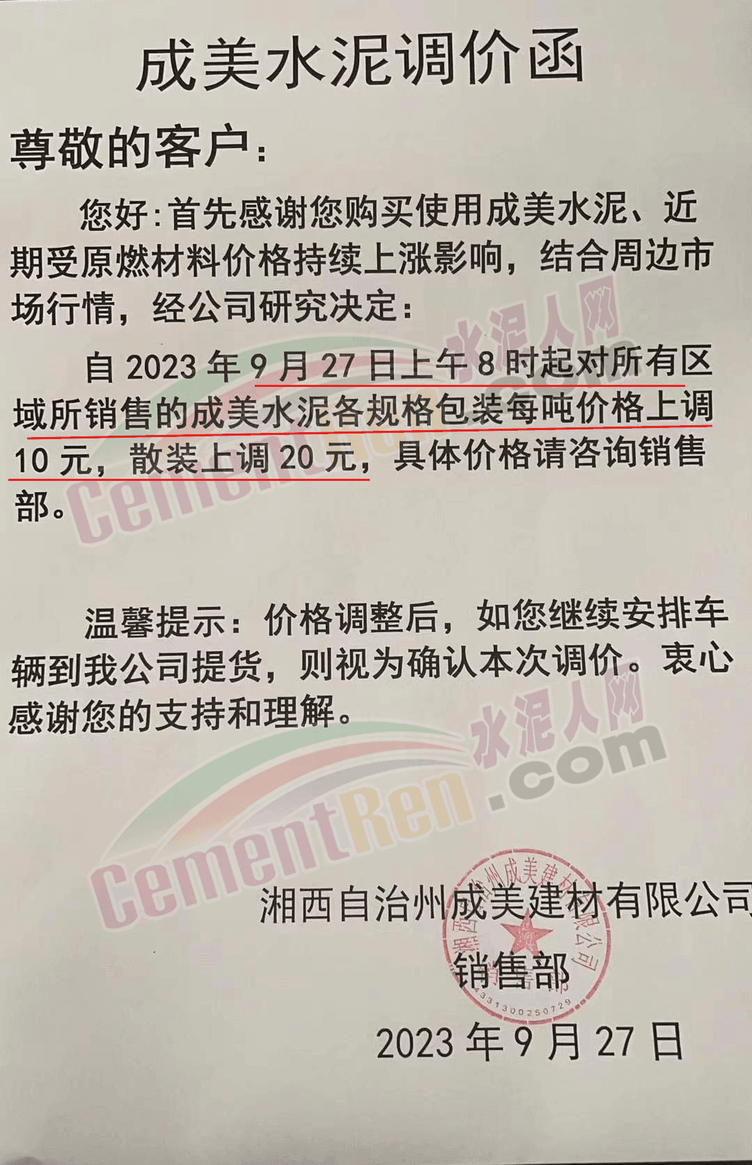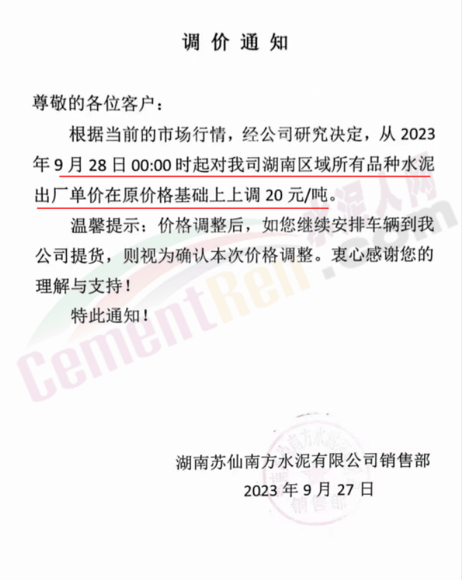 9月27日~28日,湖南省內(nèi)主要品牌企業(yè)通知上調(diào)水泥報(bào)價(jià),9月份內(nèi)已連續(xù)2—3次上調(diào)報(bào)價(jià)。當(dāng)?shù)刂饕放破髽I(yè)負(fù)責(zé)人表示,目前各企業(yè)庫(kù)位較低,疊加下游經(jīng)銷(xiāo)商備貨意愿強(qiáng)烈,主要品牌企業(yè)門(mén)前開(kāi)始排隊(duì)。預(yù)計(jì)本輪全區(qū)域普漲,要到10月中旬前后落實(shí)到位。同時(shí)為提升盈利,當(dāng)?shù)刂饕放破髽I(yè)10月份仍將繼續(xù)推動(dòng)價(jià)格上調(diào)。