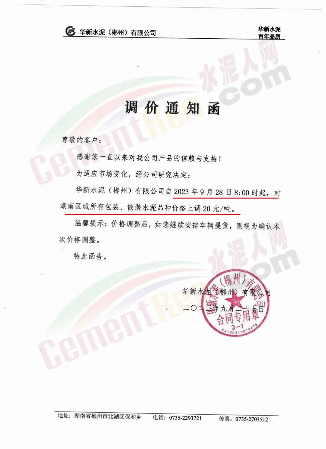 日前,重慶某品牌水泥渝東營銷中心秀山銷售部通知,根據(jù)周邊市場形勢,原燃材料持續(xù)攀升導(dǎo)致生產(chǎn)成本不斷增加,經(jīng)公司研究決定從2023年9月27日12時開始對花垣、保靖、龍山區(qū)域各品種水泥出廠價格上調(diào)20元/噸。