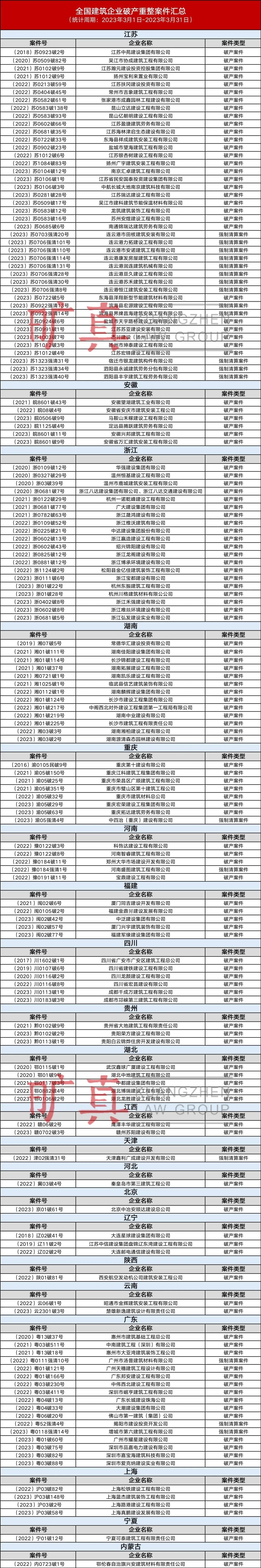 2023年3月建筑企業(yè)破產(chǎn)重整案件匯總