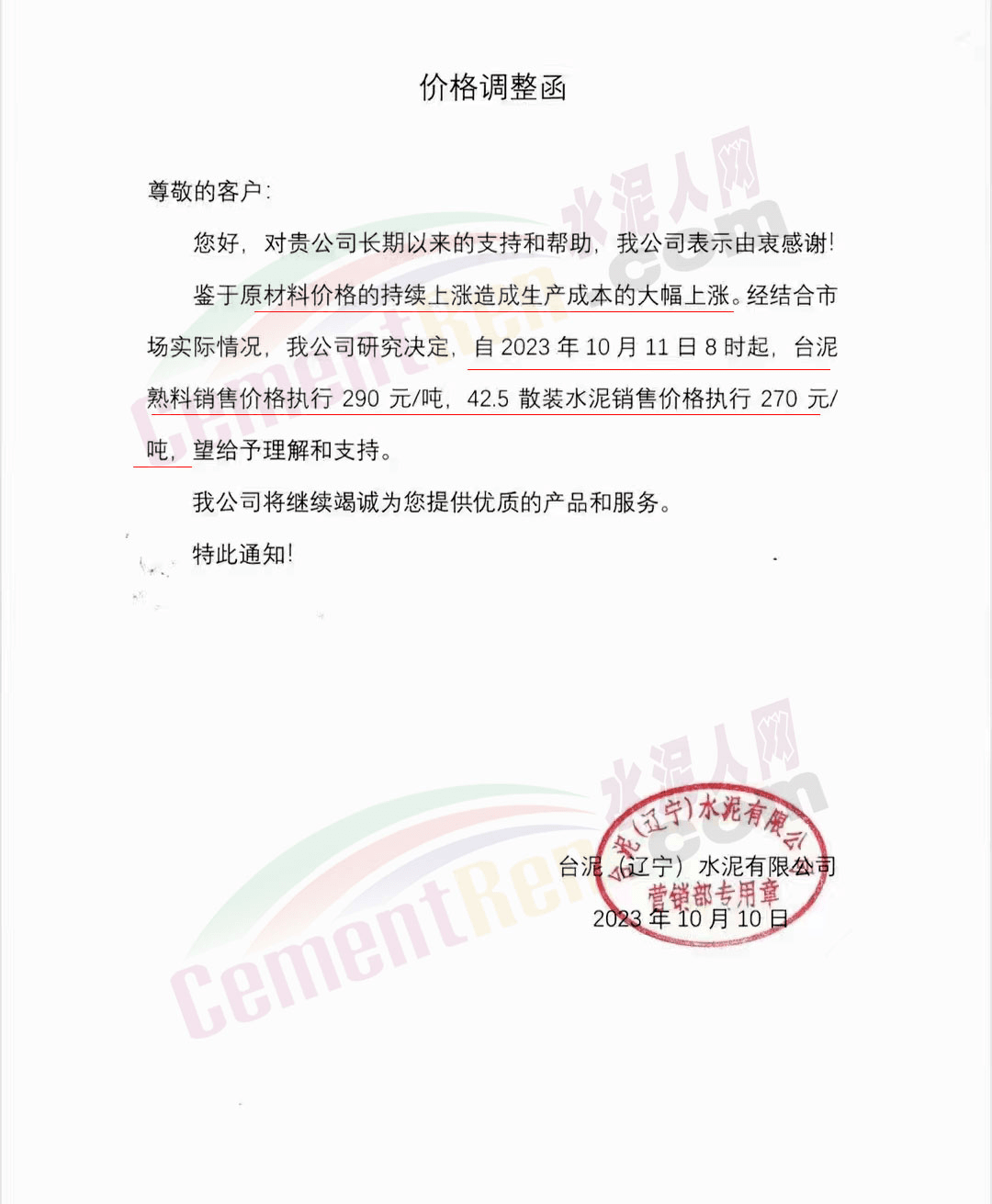 水泥人網(wǎng)通訊員消息:日前遼、吉、黑區(qū)域主要品牌企業(yè)再次通知上調(diào)水泥、熟料報(bào)價(jià)。