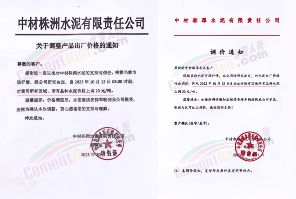 湖南區(qū)域中材株洲、中材湘潭、瀏陽(yáng)南方、車江南方、邵陽(yáng)南方、華新水泥株洲公司、華新水泥冷水江公司、衡陽(yáng)紅獅、永州紅獅、金山水泥、恒宇建材、湘潭鑫達(dá)新材料等企業(yè)通知,所有區(qū)域、所有品種水泥價(jià)格12日起上調(diào)20元/噸。