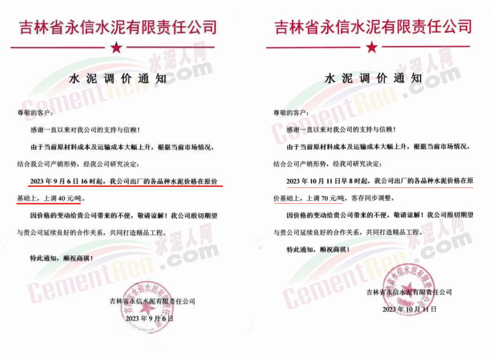 湖南寧鄉(xiāng)南方水泥有限公司分別于9月20日,9月28日,10月12日三次通知上調(diào)水泥報(bào)價(jià)各20元/噸,累計(jì)上調(diào)60元/噸。