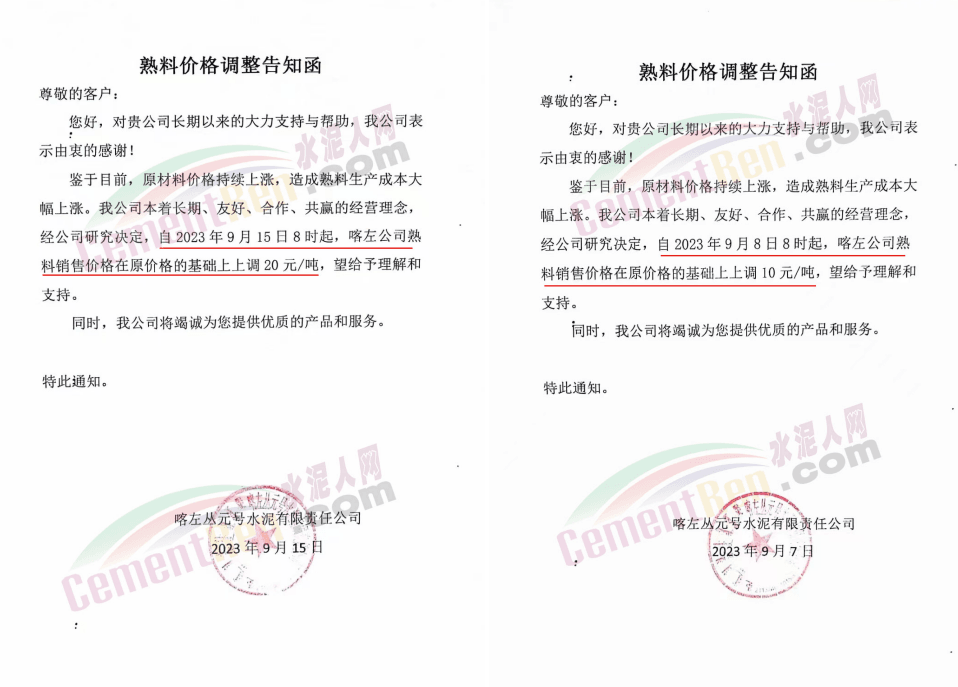 遼寧區(qū)域山水水泥子公司喀左叢元號(hào)水泥有限公司,繼9月份連漲三次后,再次通知10月14日起,上調(diào)銷(xiāo)往河北、天津區(qū)域熟料報(bào)價(jià)20元/噸,四次累計(jì)上調(diào)達(dá)100元/噸。