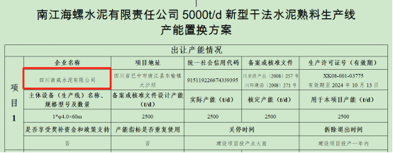 據(jù)查,早在2021年1月11日,四川省經(jīng)信廳網(wǎng)站曾發(fā)布南江海螺水泥5000t/d新型干法熟料生產(chǎn)線產(chǎn)能置換項目方案,將退出四川南威水泥2500t/d、四川成實天鷹水泥2500t/d、四川峨眉山西南水泥嘉華分公司2000t/d三條生產(chǎn)線,減量置換建設(shè)一條5000t/d生產(chǎn)線。