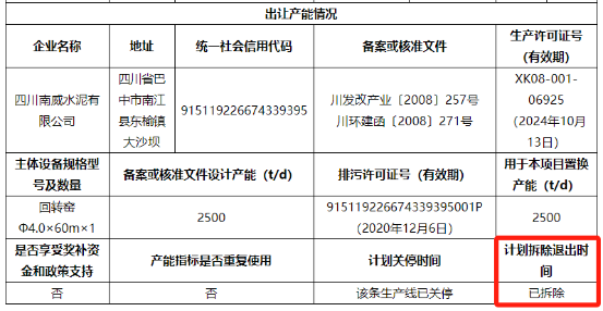 據(jù)公開消息顯示,因環(huán)保問題,四川南威水泥于2021年8月底前全面完成拆除與生態(tài)環(huán)境修復。已經(jīng)停產(chǎn)且拆除的水泥熟料生產(chǎn)線是否還能用于產(chǎn)能置換?
