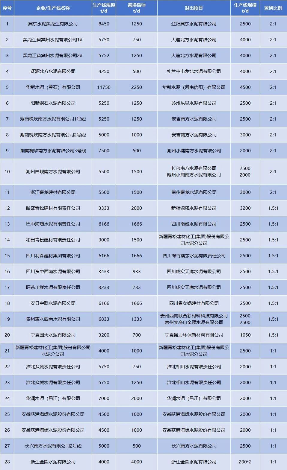 據(jù)水泥人網(wǎng)不完全統(tǒng)計,2025年以來,海螺水泥、金隅冀東等十大頭部集團(tuán)及區(qū)域龍頭企業(yè)均有補(bǔ)充產(chǎn)能項(xiàng)目,其中巴中海螺、華新水泥等企業(yè)的單線置換規(guī)模超過6000t/d。從置換比例看,70%以上的項(xiàng)目執(zhí)行1.5:1或更高標(biāo)準(zhǔn),部分項(xiàng)目置換比例達(dá)2:1.