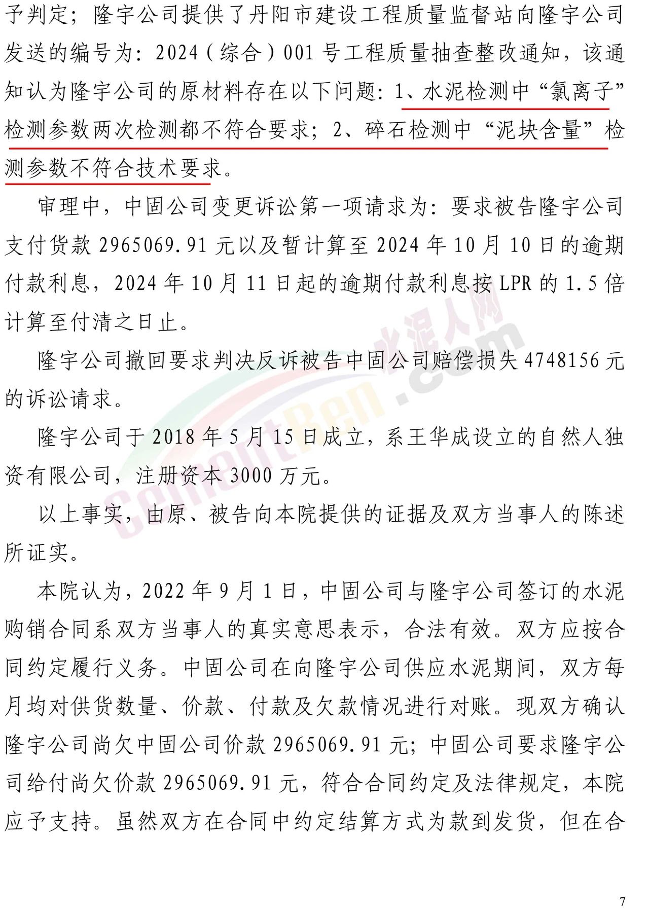 隆宇公司則提起反訴,堅(jiān)稱中固公司供應(yīng)的水泥存在嚴(yán)重質(zhì)量問題(氯離子超標(biāo)、強(qiáng)度不足),并提供了自己委托江蘇省建筑工程質(zhì)量檢測(cè)中心有限公司于2024年12月12日出具的檢測(cè)報(bào)告作為核心證據(jù)。然而,這份報(bào)告成為其敗訴的關(guān)鍵伏筆。